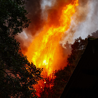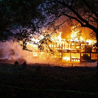 Zahlreiche Zeugen meldeten am Sonntagabend gegen 19:25 Uhr ein massives Brandereignis auf dem Gelände des geschlossenen historischen Märchenwaldes im Solinger Ittertal. Aufgrund der ersten Notrufe wurde umgehend das Alarmstichwort "F2" alarmiert und zahlreiche Kräfte der Solinger Feuerwehr zum Brandort entsandt. Als die ersten Kräfte am historischen Freizeitpark eintrafen, stand die ehemalige Bayernhalle, eine rund 1200 qm große ehemalige Veranstaltungshalle, bereits vollständig in Flammen.