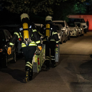 Die Feuerwehr musste aufgrund einer zugeparkten Straße rund 100 Meter entfernt das Löschfahrzeug abstellen und zahlreiche Schläuche bis zum Brand legen.