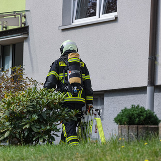 Am Sonntagmittag, gegen 12:30 Uhr, wurde die Feuerwehr in die Opphofer Straße alarmiert. Grund war eine Rauchentwicklung aus einem Fenster im 1. Obergeschoss, ausgelöst durch angebranntes Essen.